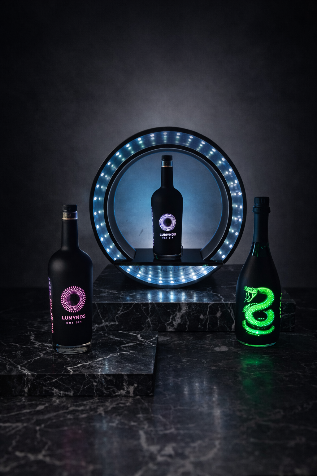 Le bottiglie luminose Lumynos combinano design moderno e tecnologia LED integrata, trasformando un oggetto decorativo in un’esperienza visiva unica